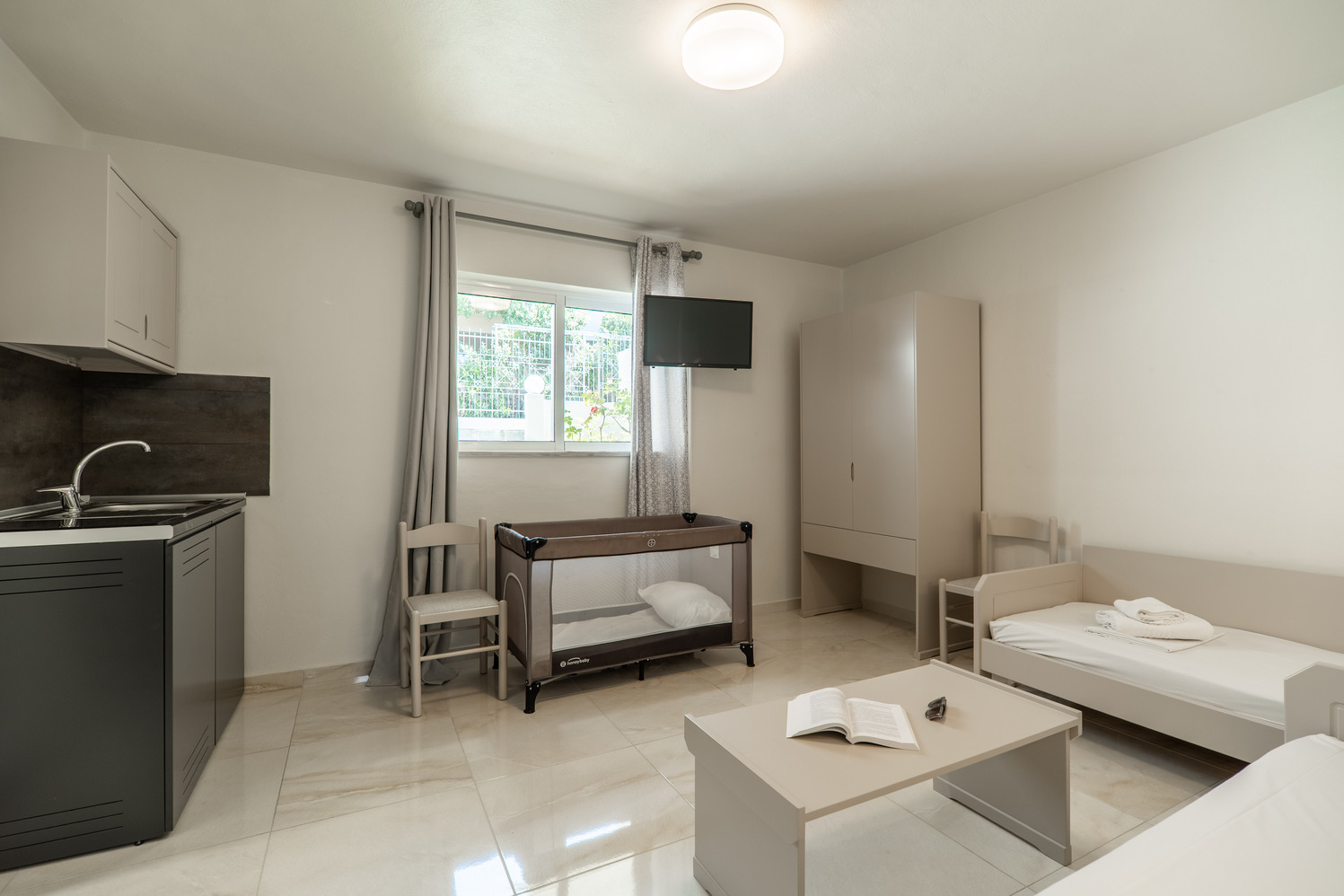 Boasting a private entrance, this two air-conditioned apartment includes 1 living room, 1 separate bedroom and 1 bathroom with a shower and a hairdryer. Meals can be prepared in the kitchenette, which is fitted with a stovetop, a refrigerator, kitchenware and a tea and coffee maker. A seating area, a desk, a balcony and soundproof walls are offered in this apartment. The unit has 3 beds.